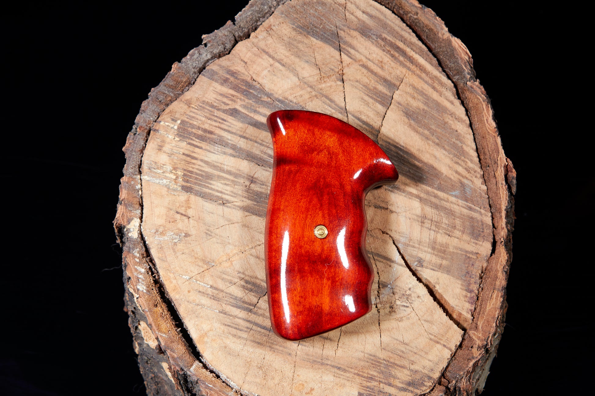 Enhance the grip of your Taurus handgun with these medium/large frame revolver grips. Crafted with high-quality curly maple wood and a lacquer finish, these grips provide a better grip and a more stylish look. Made in the United States, these grips are perfect for gun enthusiasts who want to personalize their firearms. Designed specifically for Taurus guns, these grips are easy to install. Upgrade your gun's grip with these Taurus Medium/Large Frame Revolver Grips.